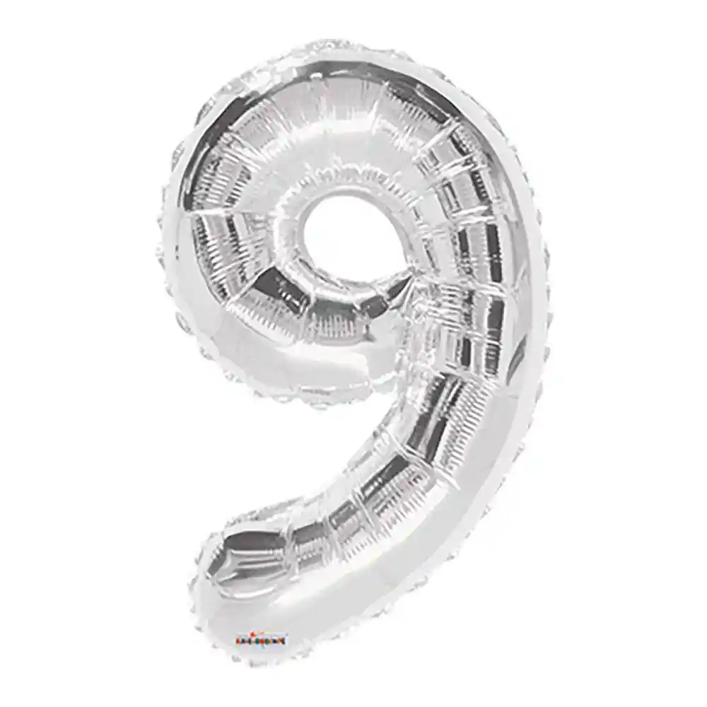 Globo Metalizado Numero 9 Plateado 16"