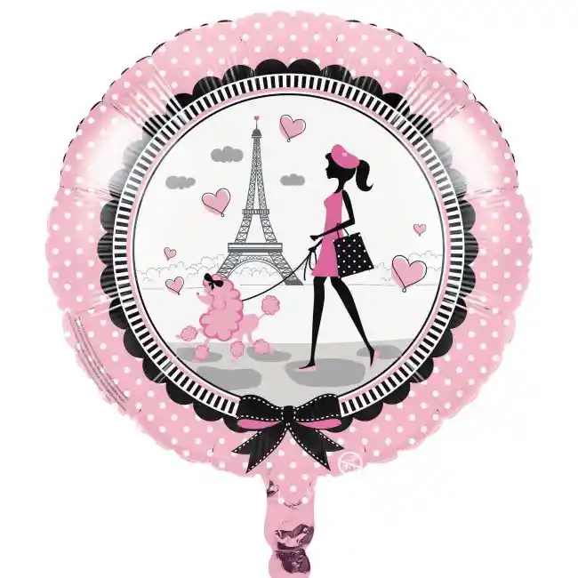 HERMOSO GLOBO METALIZADO CON DISEÑO DE PARÍS, TAMAÑO DE 18" 45 CM