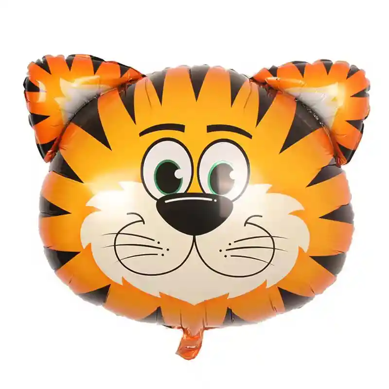 Globo metalizado en forma de cara tigre, en tamaño de 50 x 55 cm, sin inflar. Incluye: Pitillo para inflar el globo con aire.
