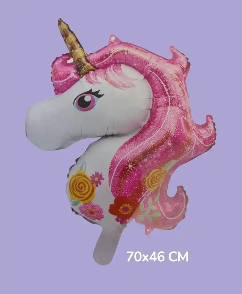 Dale un toque mágico y adorable a cualquier celebración con este Globo Metalizado de Unicornio, ideal para fiestas infantiles, temáticas de unicornio, cumpleaños, decoraciones creativas y sesiones de fotos. Su diseño brillante en tonos rosados con detalles dorados lo convierte en una pieza protagonista en cualquier ambiente. •Tamaño: 70 x 46 cm •Material: Foil metalizado de alta calidad •Diseño: Unicornio lateral con melena rosa brillante y detalles florales •Uso: Ideal para decorar paredes, mesas dulces, arcos y fondos fotográficos •Inflado: Compatible con aire o helio Importante: •El globo se entrega completamente desinflado.