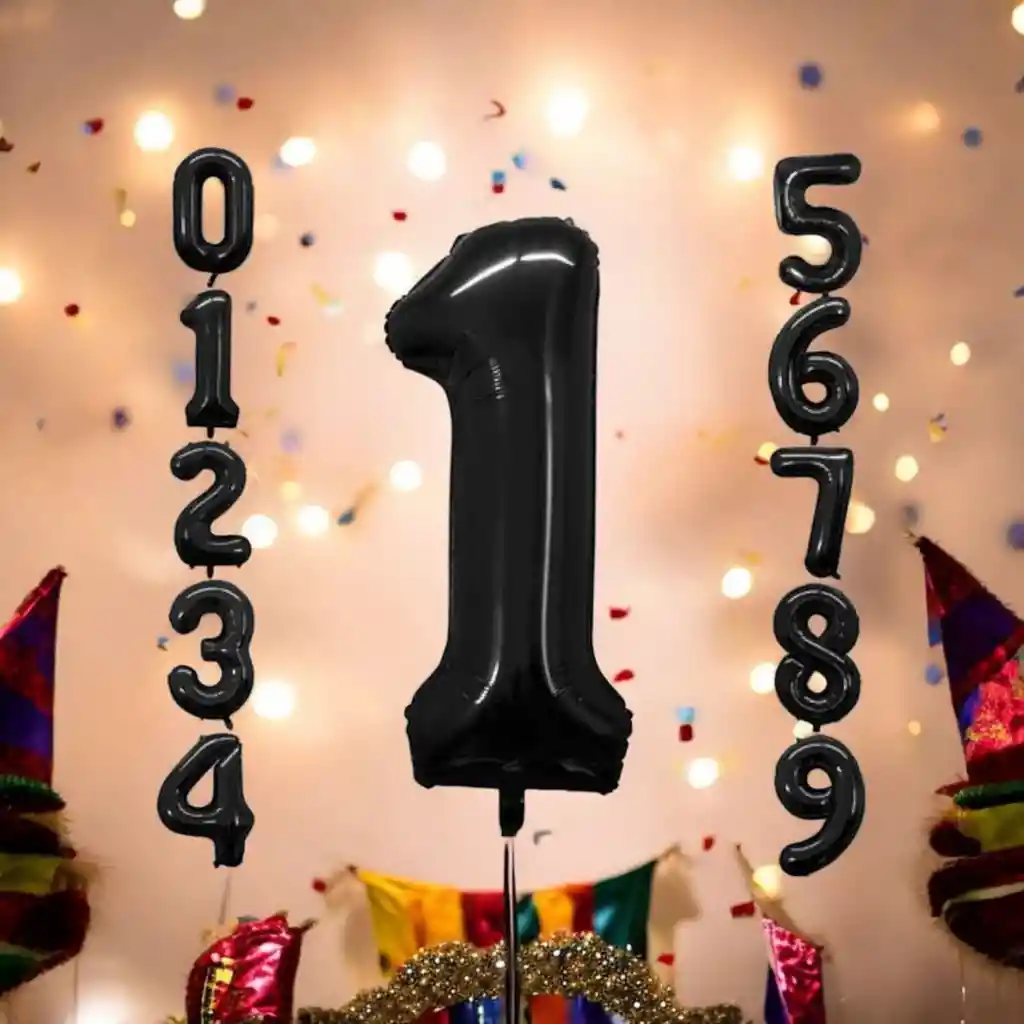 Globo Número Metalizados Negro / 16 Pulgadas (45cm) X1 UNIDAD Globo Negro Metalizado de 16 pulgadas. Globo mediano para decoración, fiesta de Cumpleaños, Boda, Aniversario, Eventos, Suministros ETC. TENER EN CUENTA: •El Globo viene Desinflado •Viene con Autosellado