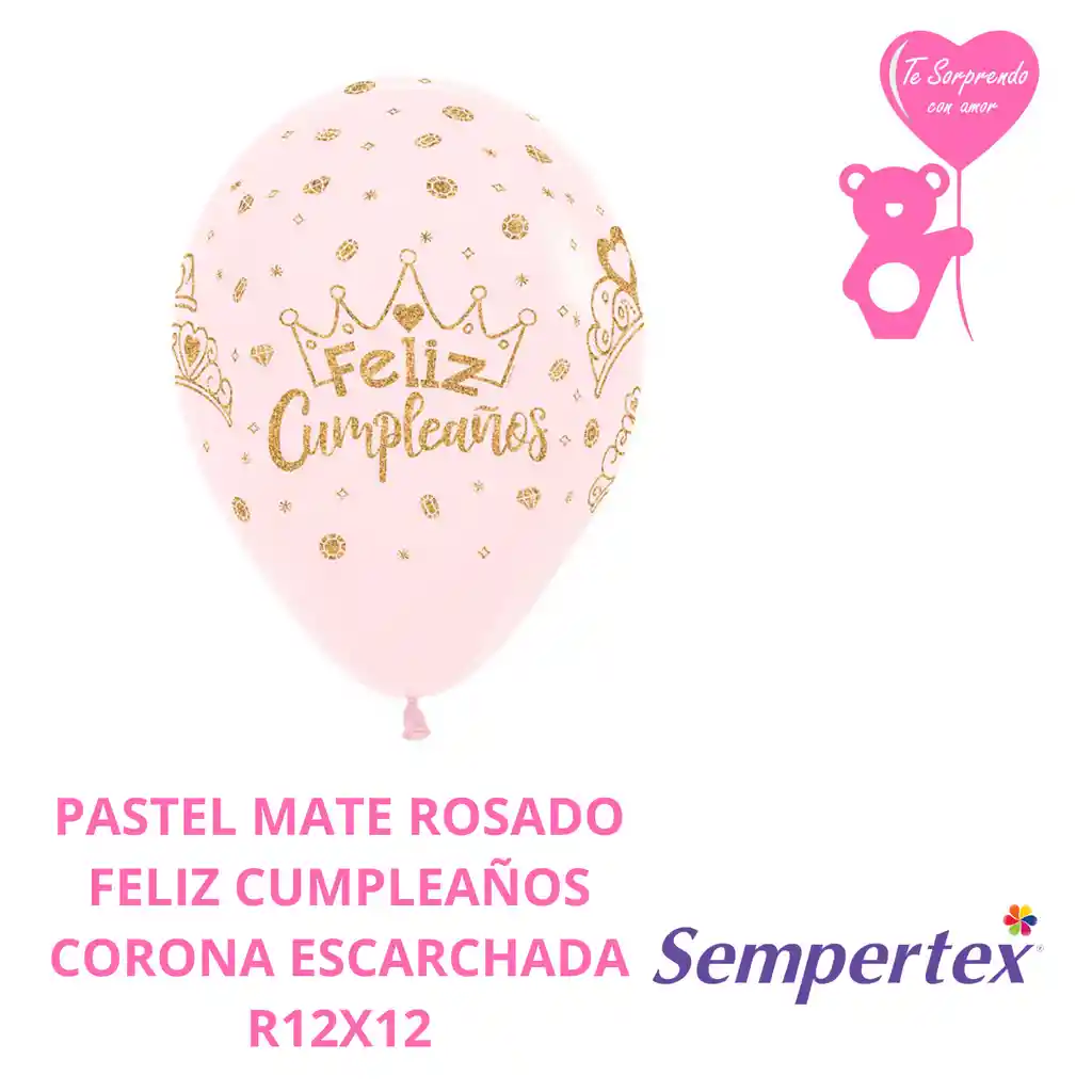 Este globo no va inflado. Su tono rosado mate con diseño de corona escarchada lo convierte en el detalle perfecto para celebraciones femeninas llenas de dulzura y estilo. Ideal para decorar fiestas de cumpleaños y combinar con arreglos personalizados. Apto para inflar con aire o helio (no incluido).