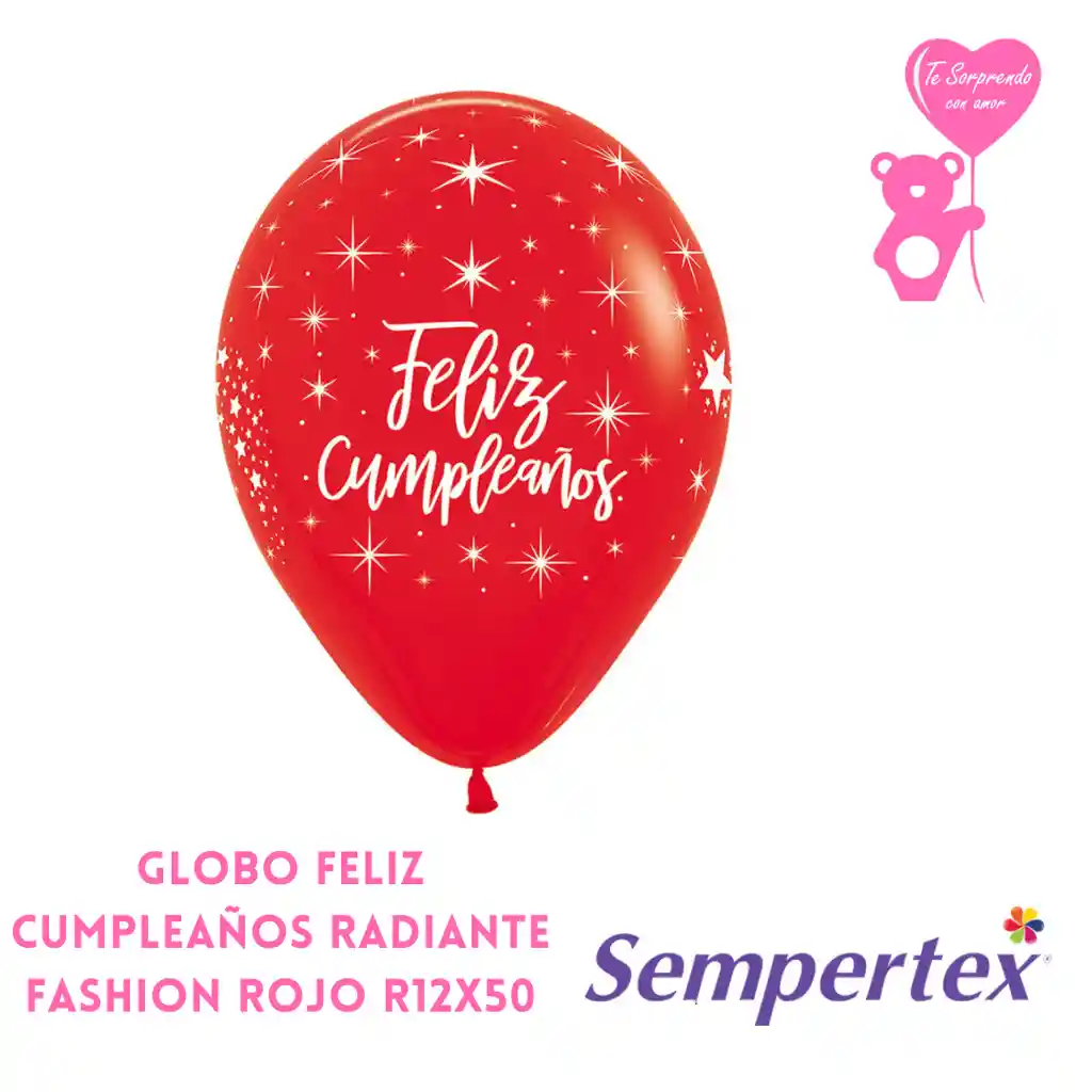 Estos globos no van inflados. Set de 50 globos rojos Feliz Cumpleaños Radiante de Sempertex, perfectos para decorar celebraciones especiales. Con su vibrante color rojo y material de alta calidad, garantizan resistencia y un inflado óptimo con aire o helio. ¡Dale un toque festivo y brillante a cada cumpleaños! 🎈🎉