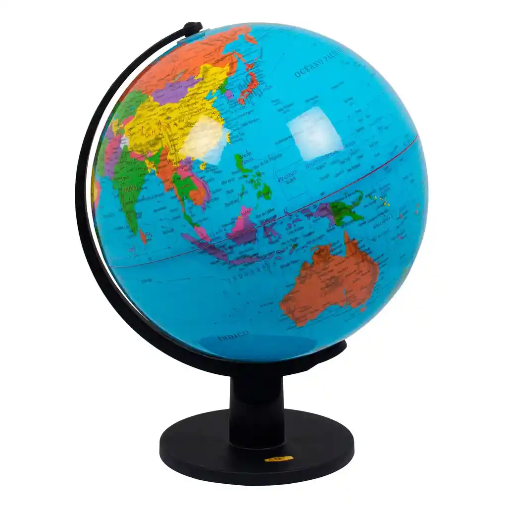 Este globo terráqueo de 23cm de altura, te permitirá tener el mundo a tu alcance. Con su diseño político, podrás identificar fácilmente los distintos continentes, países y mares. Su esfera es de color azul, representando los océanos y mares, y su base es de plástico resistente. Este modelo, denominado Mapa Mundi, tiene un diámetro de 14 cm, lo que lo hace compacto y fácil de ubicar en cualquier espacio. A pesar de su tamaño, el globo terráqueo es muy detallado, lo que facilita la identificación de las diferentes regiones del mundo. Este globo terráqueo es del tipo de mesa, por lo que es perfecto para colocarlo en un escritorio o estantería. Aunque no cuenta con luz, su diseño y colores son lo suficientemente claros para poder estudiarlo con facilidad. Este globo terráqueo es ideal para aprender y explorar la geografía de nuestro planeta, ya sea para fines educativos o simplemente por placer. Con este globo, podrás viajar por el mundo sin salir de casa.