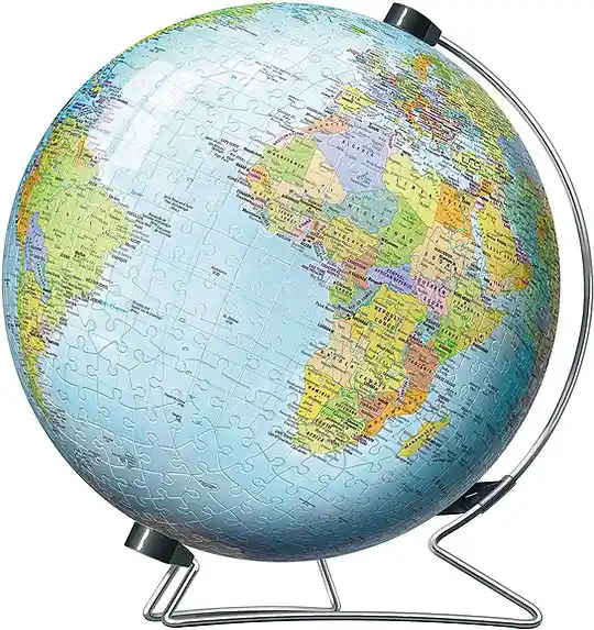 Empaque de regalo sin costo adicional. 10 años + ¡Construye tu propio globo terraqueo 3D Ravensburger! 540 piezas de rompecabezas cuidadosamente construidas, que incluyen piezas curvas y con bisagras que se entrelazan, se unen para crear este clásico globo terráqueo vintage de 23cm de diámetro. Muestra tu modelo terminado o desarma y disfruta el desafío de construir de nuevo. Cuenta con la tecnología EasyClick patentada: no se requiere deslaminación, pelado ni pegamento. Las piezas están numeradas para facilitar el montaje.