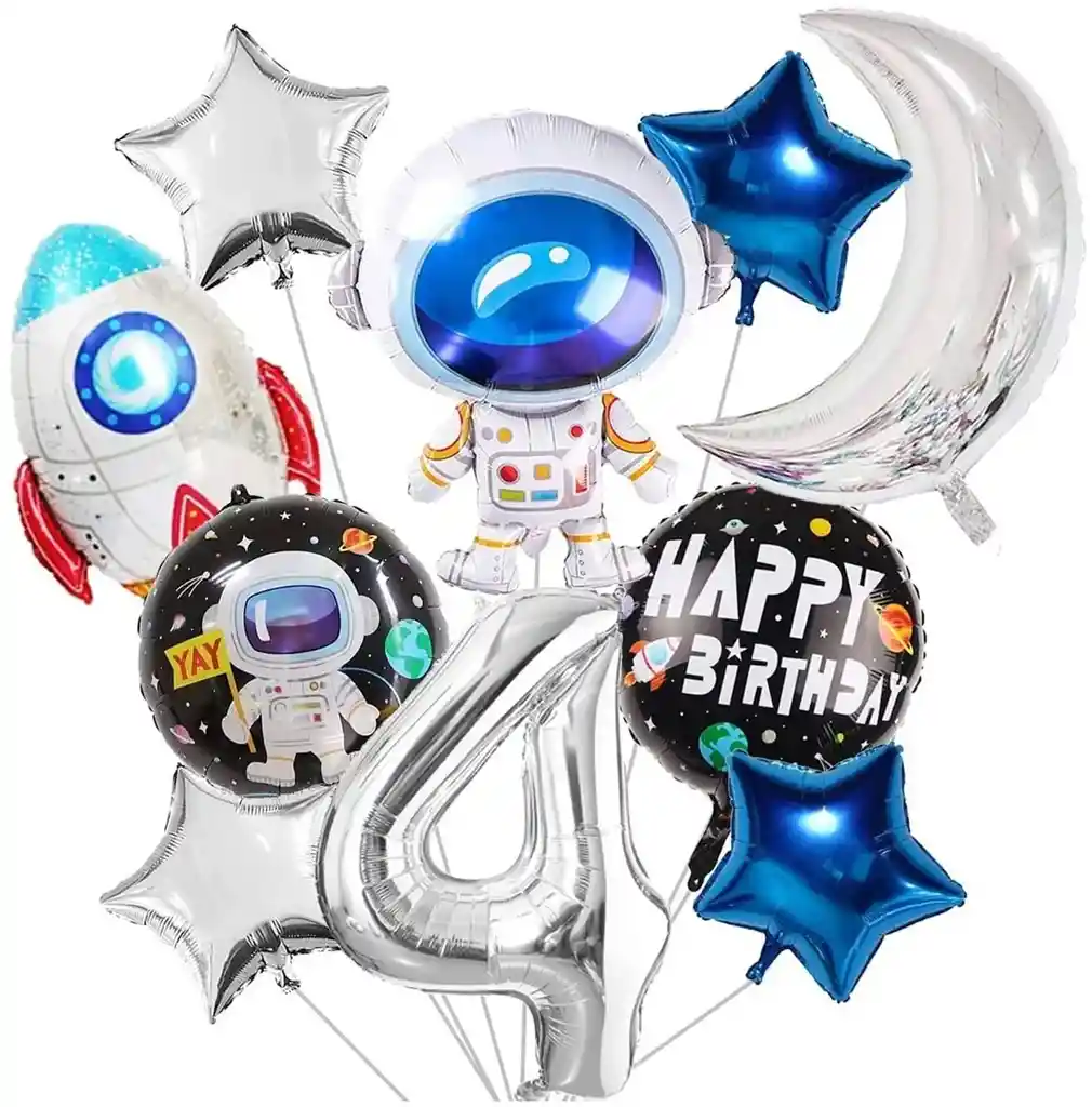 *********************GLOBOS Y PELUCHES MASMELO********************* Por tu compra te llevas: 1 Globo cohete espacial 51x64cm 1 Globo astronauta 50x70cm 1 Globo luna 45cm altura 2 Globo circular Happy Birthday y astronauta 45x45 2 Globo estrella dorada 45x45cm 2 Globo estrella azul 45x45cm 1 Globo Numero 82 cm de altura (1,2,3,4,5,6,7,8,9 o 0) segun tu preferencia *Los globos se entregan desinflados, tu compra no incluye el montaje ni la decoración, el servicio de armado no lo tenemos disponible. sin embargo te damos todas las instrucciones para hacer de modo profesional. Si deseas adicionar otros articulos a tu compra puedes escribirnos, recuerda que Somos Globos y Peluches Masmelo ;) - En ciudades fuera de Bogotá despachamos para el mismo día si compras antes de las 11AM (no incluye festivos) - En Bogotá despachamos para el mismo día, si haces el pedido antes de las 4PM (no incluye festivos)