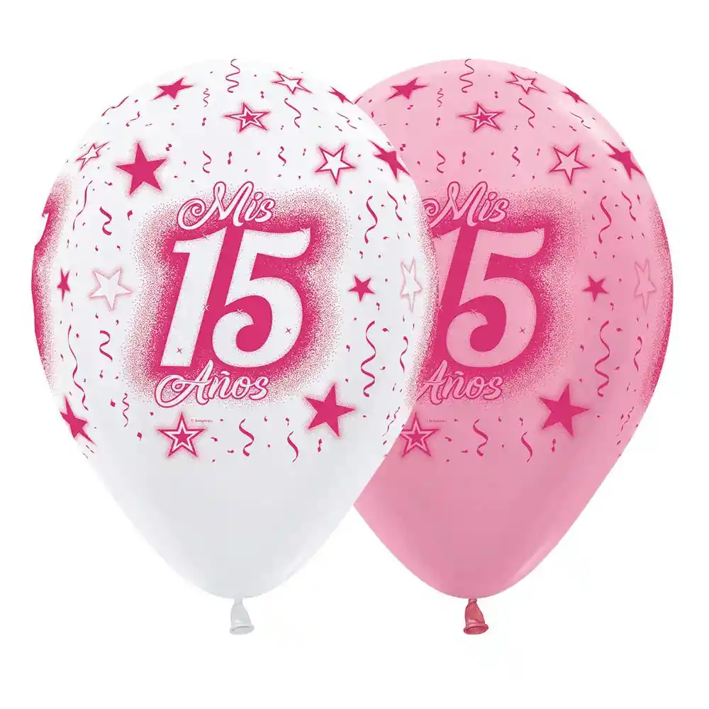 🎈 Características principales Marca y línea: Sempertex – colección “Mis 15 Años”, tamaño R‑12 (aprox. 30 cm inflado) en paquete de 12 unidades Material: Látex 100 % biodegradable, grueso y duradero, menos propenso a reventarse Textura y acabado: Satinado: acabado perlado elegante, disponible en tonos suaves. Reflex: brillo vibrante y efecto metálico disponible en colores como fucsia, dorado y plata Impresión: “15” impreso a doble cara, decorado con detalles elegantes (estrellitas, destellos).