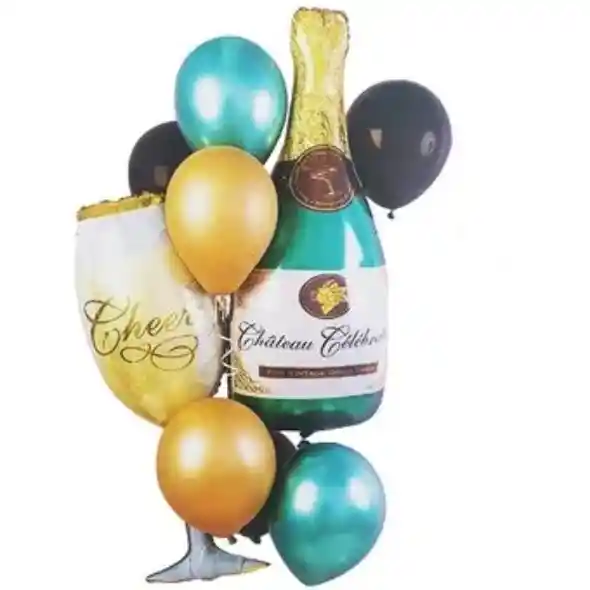 Globos x 8 Unidades CHAMPAÑA para cualquier ocasión - Graduación, Cumpleaños, Matrimonio, Primera Comunión Contenido 2 Globos r12 negros 2 Globos r12 Verdes 2 Globos r12 dorados 1 Globo Champaña Multicolor 1 Globo copa Champaña dorado Nota: Globos se envían sin inflar