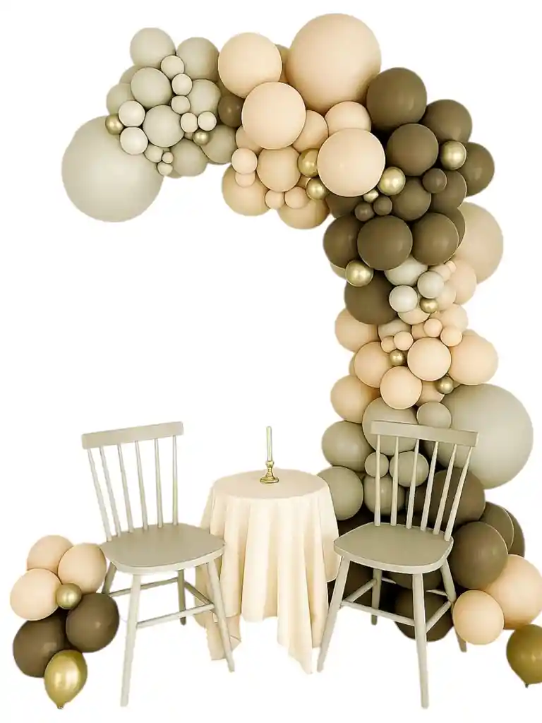 globos para decoracion de latex colores tierra colores cafe, plateado, dorado y rosado claro 68 globos 1 cinta de arco 1 rollo de puntos de pegamento los globos se envian sin inflar tamaño R12 nota: los globos se envían sin inflar Si deseas adicionar otros Articulos a tu compra puedes escribirnos, para poder ayudarte.