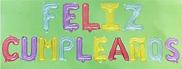Disfruta de tu decoración Globo Frase Feliz Cumpleaños de aproximadamente 2 metros lineal. altura de cada letra 40cm cada letra es individual y se puede inflar a pulmón, con aire o con helio multicolor Nota: los globos se envían sin inflar Si deseas adicionar otros Articulos a tu compra puedes escribirnos, para poder ayudarte. - En ciudades fuera de Bogotá despachamos para el mismo día si compras antes de las 12AM - En Bogotá despachamos para el mismo día, si haces el pedido antes de las 2 PM recuerda q tenemos muchos productos disponibles para tener una linda celebracion de fiesta con lyly