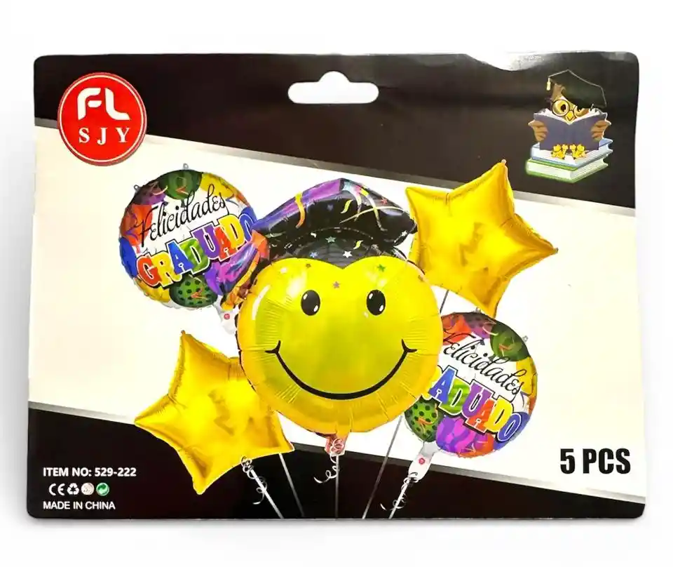 Globos de Graduacion metalizados con un emoji con birrete de grado mas dos globos de 18 pulgadas Felicidades Graduado mas dos estrellas doradas