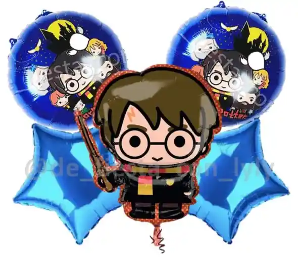 Globos Harry Potter x 5 unidades contenido: 2 Globos metalizados Harry potter Azul 45 cm 2 globos esatrellas metalizadas 45 cm 1 GloboHarry potter 60*43 cm Perfectos para tu celebración. disponibilidad inmediata Globos se envían sin inflar