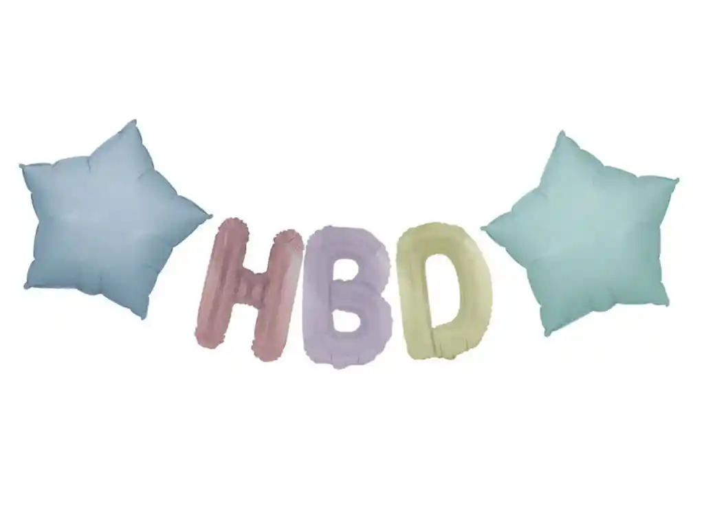 Kit globos HBD de 16 pulgadas mas 2 estrellas de 18 pulgadas en colores pastel letras HBD Globos feliz cumpleaños Globos metalizados Happy Brihtday