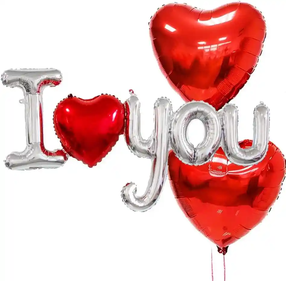 Globos ILOVE U + 6 CORAZONES contenido: 6 Globos de Corazon 45 cm rojos metalizados 1 Globo I love U Perfectos para tu celebración. disponibilidad inmediata Globos se envían sin inflar