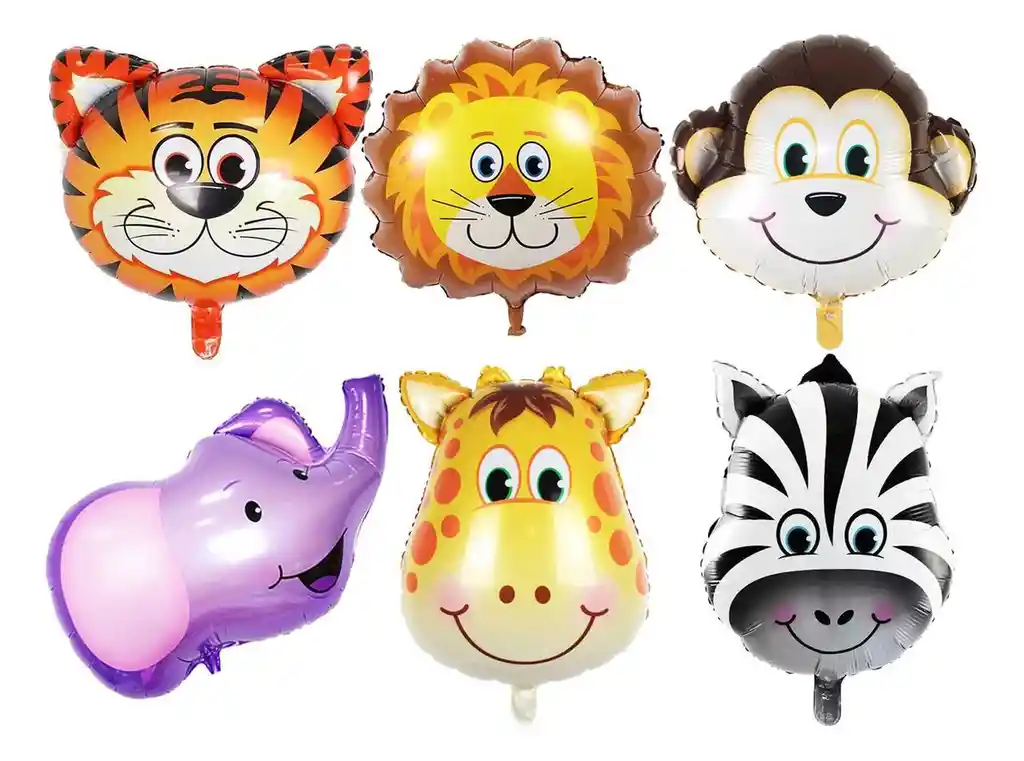 *********************GLOBOS Y PELUCHES MASMELO********************* Por tu compra te llevas. 6 Globos animales de selva 33x33cm * No incluye hojas ni follaje *Los globos se entregan desinflados, tu compra no incluye el montaje ni la decoración, el servicio de armado no lo tenemos disponible. sin embargo te damos todas las instrucciones para hacer de modo profesional. Si deseas adicionar otros articulos a tu compra puedes escribirnos, recuerda que Somos Globos y Peluches Masmelo Si necesitas variación en los colores, colocar un número, más globos o realizar otros cambios en el diseño original escribenos para ver si podemos hacerlo. Tenemos todo lo necesario para tus decoraciones, somos lo último en tendencias mundiales decorativas. Tenemos disponible: Vasos, platos, manteles, guirnaldas, cubiertos, globos de todo tipo, números, letreros, vela, Etc. Puedes encontrar los articulos de nuestra tienda en el siguiente link, copia y pega, si no encuentas lo que necesitas escribenos: https://www.rappi.com.co/tiendas/900280040-globosypeluchesmasmelo-mt-enc/decoracion-para-fiestas/globos-y-bombas