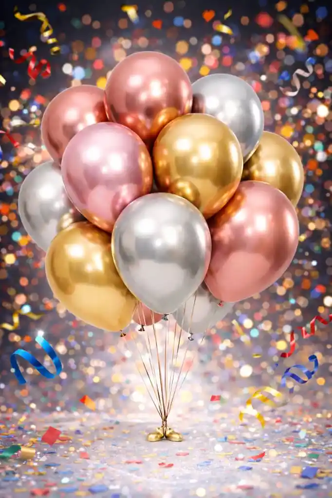 Eleva la decoración de tus celebraciones con este exclusivo set de globos látex cromados en tonos dorado, oro rosa y plateado. Su acabado tipo espejo aporta un estilo moderno, elegante y versátil, ideal para eventos infantiles suaves, fiestas premium, cumpleaños, baby showers y celebraciones especiales. Características: Contenido: 12 globos Colores: Dorado, Oro Rosa y Plateado Tamaño: R12 (aprox. 12 pulgadas / 30 cm inflados) Material: Látex de alta calidad Acabado: Cromado brillante efecto espejo. Importante: Los globos se entregan desinflados Apto para inflar con aire o helio Perfectos para ramilletes, arcos de globos, centros de mesa o decoraciones minimalistas y elegantes.