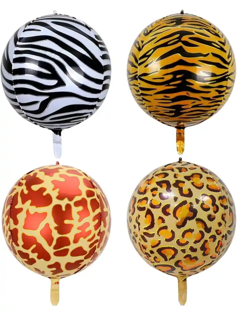 GLOBOS METALIZADOS 1 globo Metalizado de tigre de aproximadamente 55 cm 1 globo Metalizado de jirafa de aproximadamente 55 cm 1 globo Metalizado de cebra de aproximadamente 55 cm 1 globo Metalizado de leopardo de aproximadamente 55 cm redondos ideal para usar con helio los globos se envian sin inflar si deses algo adicional indicanos y con gusto te colaboramos