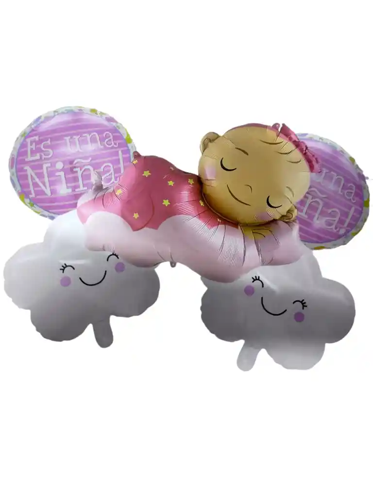 Decoracion fiestas baby shower 1 Globo metalizado de bebe de 67x91 cm 2 globos de nube metalizados de48x44,5cm 2 globos redondos de la tematica metalizados de 45 cm globos facil de inflar el globo se envia sin inflar si deseas algo adicional indicanos y con gusto te colaboramos