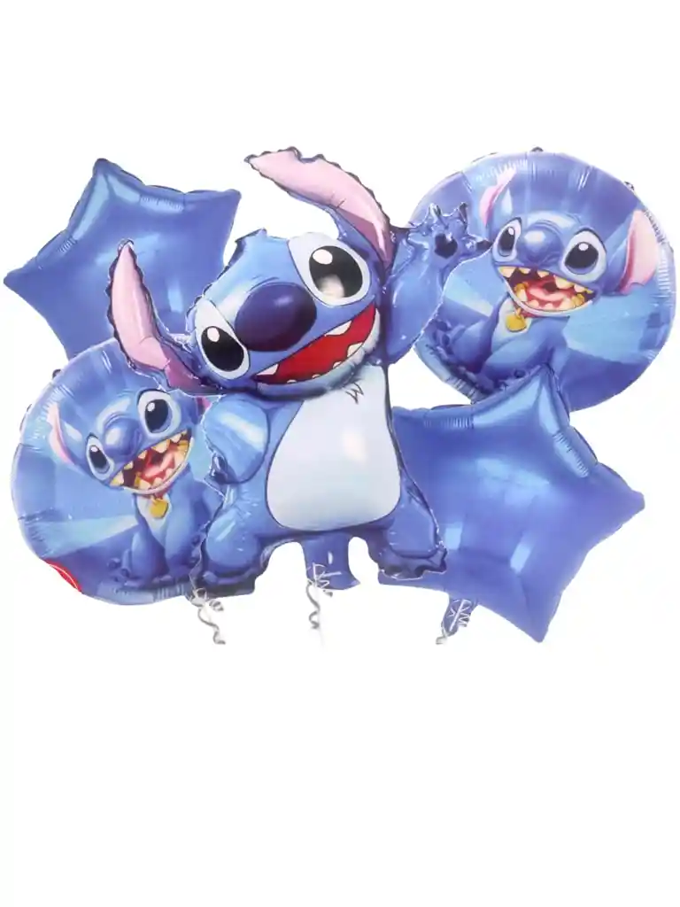 globos metalizados 1 globo grande de stitch de aproximadamente 65 cm 2 globos estrellas metalizadas azules de 45 cm 2 globos redondos metalizados de 45 cm los globos se envian sin inflar si deseas algo adicional indicanos y con gusto te colaboramos