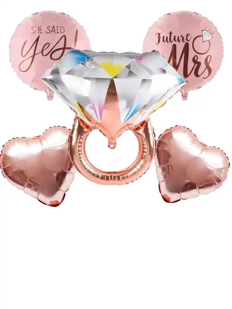 GLOBOS METALIZADOS 2 globos redondos de 45 cm 2 globos de corazon de 45 cm oro rosa 1 globos de anillo de 80 cm color oro rosa globos aptos para helio los globos se envian sin inflar si deses algo adicional indicanos y con gusto te colaboramos