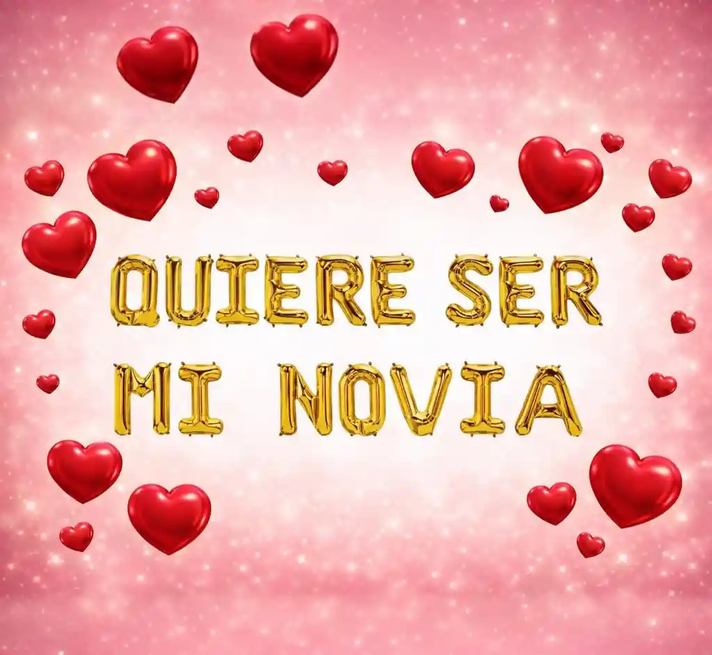 Esta imagen presenta un mensaje romántico y brillante de una propuesta de matrimonio, utilizando globos metalizados dorados que dicen "QUIERE SER MI NOVIA". El brillo metálico de los globos añade un toque de elegancia y sofisticación a este momento tan especial. Ideal para capturar la emoción y el amor en una propuesta única, reflejando un compromiso lleno de lujo y ternura. •Color: Dorado •Vienen 16 globos de Letras •Medidas: Alto:45 cm TENER EN CUENTA: •Los globos vienen desinflados •En la compra solo vienen incluidos los globos, demás accesorios son para decoración de la imágen.