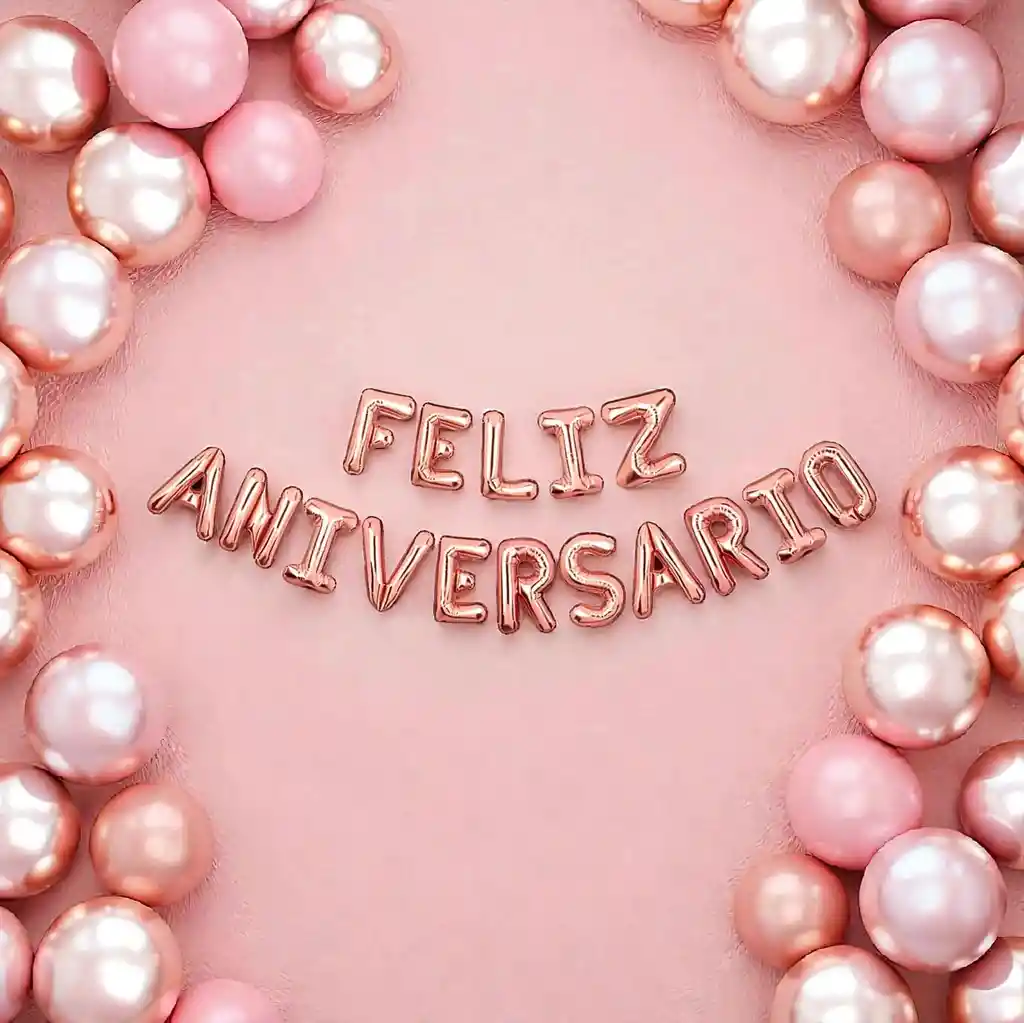 Set de globos metalizados con frase “Feliz Aniversario” en color oro rosa, ideal para decoración de celebraciones, aniversarios y eventos especiales. •Cada globo letra mide 18 pulgadas •Material metalizado de buen brillo •Color oro rosa elegante •Perfectos para decorar mesas, fondos de fotos y espacios de fiesta •Se pueden inflar con aire (no requieren helio) •Incluye únicamente los globos metalizados de letras “Feliz Aniversario”. •Los globos se entregan desinflados. •No incluye cintas, porta globos ni otros accesorios (solo son para ambientación de la imagen).