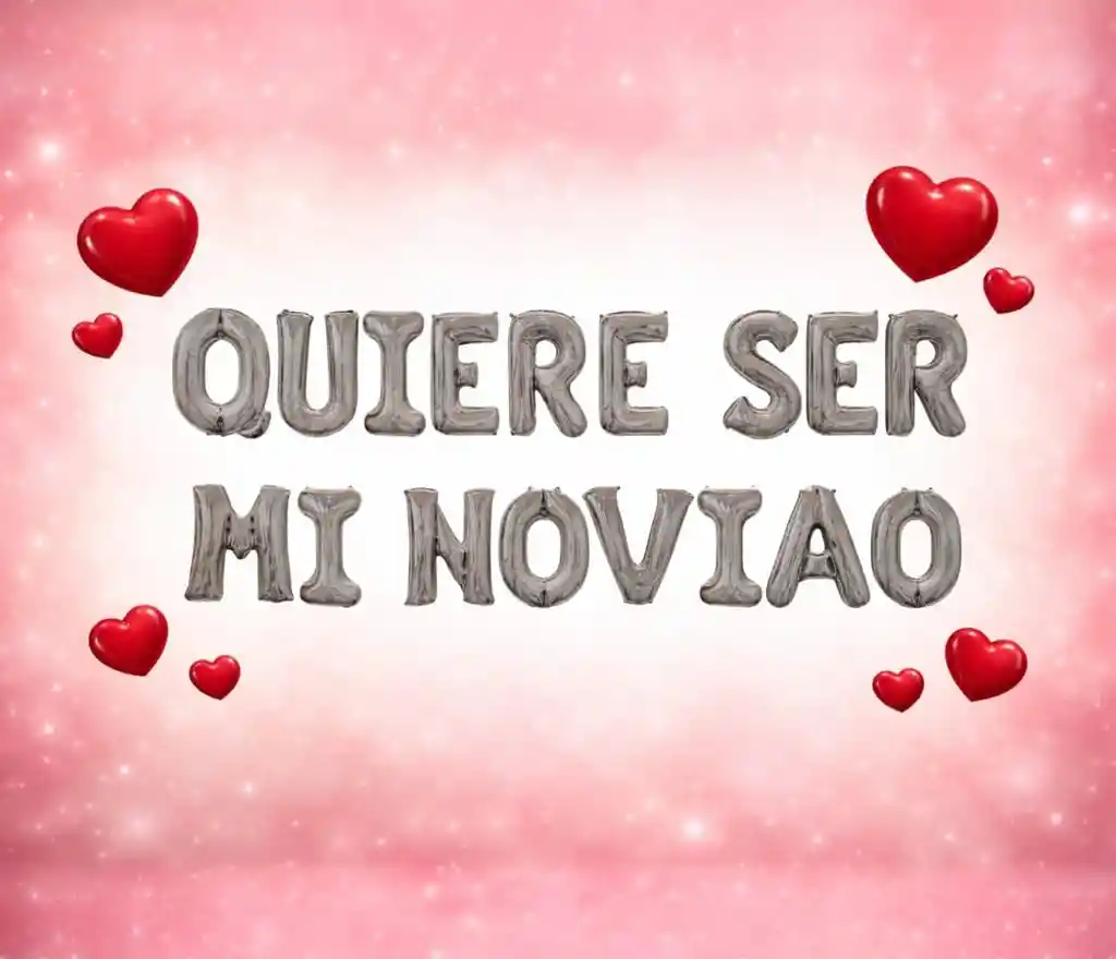 Una hermosa decoración en globos metalizados con la frase "¿Quieres ser mi novia?" (o "novio"), perfecta para crear un ambiente romántico y especial. Con letras grandes de un brillante color plateado, esta pieza le dará un toque único y encantador a cualquier propuesta de amor, evento o sorpresa. Ideal para propuestas de matrimonio, aniversarios o cualquier ocasión especial que celebre el amor. •Color: Plateado •Vienen 16 globos de Letras •Medidas: Alto:45 cm TENER EN CUENTA: •Los globos vienen desinflados •En la compra solo vienen incluidos los globos, demás accesorios son para decoración de la imágen.