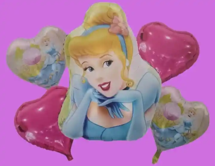 Decora tus celebraciones con este encantador set de Globos Metalizados Princesa Disney Cenicienta X5 Unidades, con diseño colorido. Ideal para fiestas temáticas, cumpleaños y eventos infantiles. Por tu Compra llevas: •1 Globo Princesa Cenicienta 63x58cm •4 Globos Corazón 45x45cm Tener en Cuenta: •Los globos se envían desinflados. •Solo se incluye lo mencionado en la descripción los demás accesorios de las imágenes son para ambientación decorativa. Perfectos para llenar de magia y fantasía cualquier celebración.