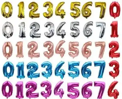 Globo metalizado grande de número ideal para inflar con aire o helio. Sirve para fiestas, cumpleaños etc Alto de cada número: 80cm Cada numero incluye un pitillo para inflarlo