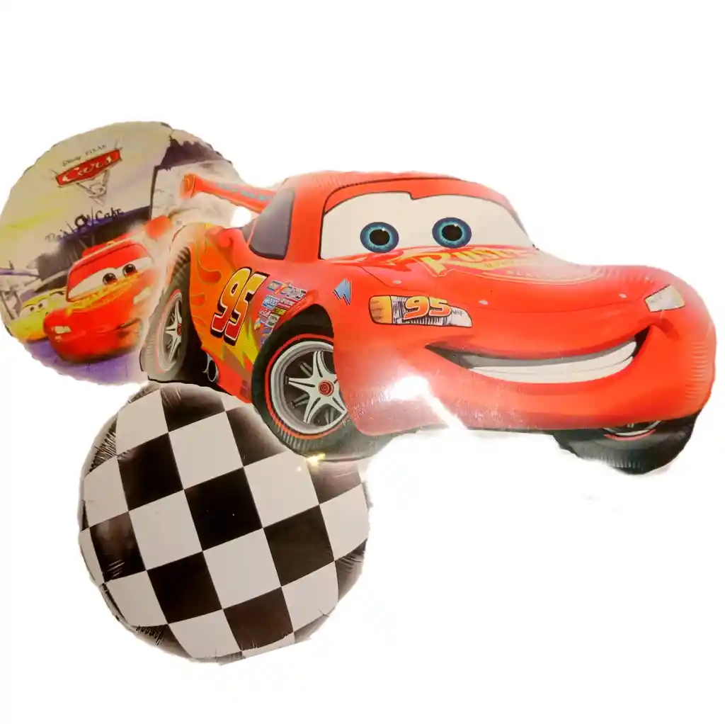 set de 3 globos de cars , ideal para soprender en un cumpleaños o celebrar el dia del niño, incluye tu mensaje personal , inflado con aire frio (No Helio )