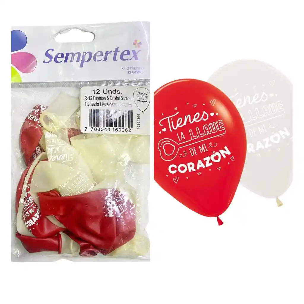 GLOBOS TIENES LA LLAVE DE MI CORAZÓN INFLAN HASTA 30 CMS R12 X 12 UNDS