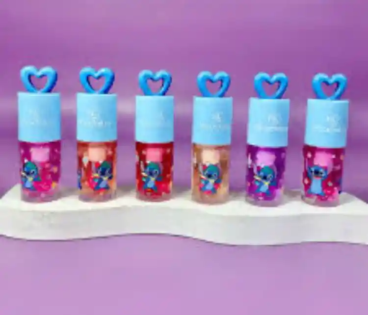 Este es un brillo labial de Stitch de la marca Mocmallu con tapa de corazón.