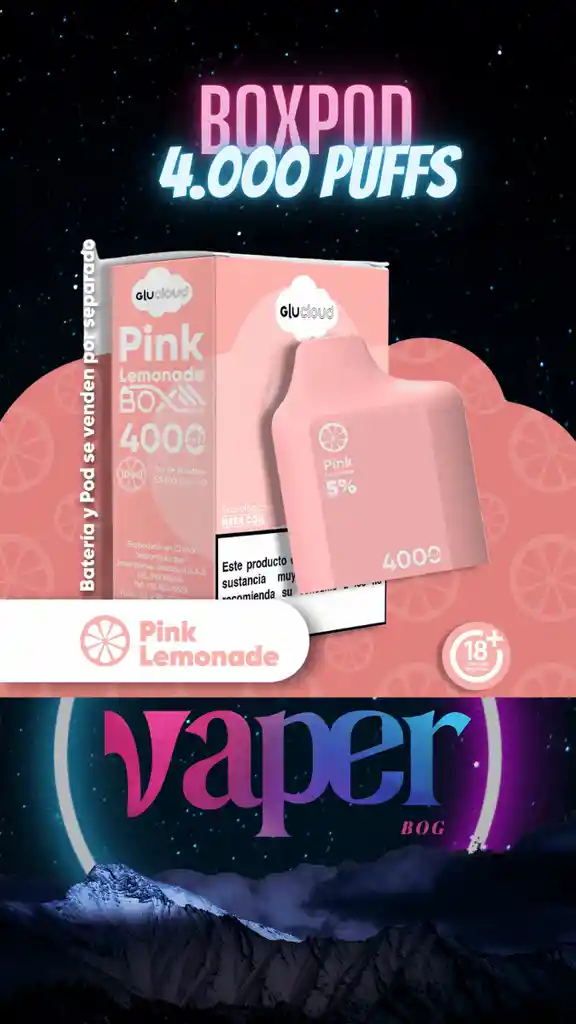 GluCloud BoxPod Limonada Cerezada 4000 Puffs. Descubre un nuevo nivel de conveniencia con nuestro Box Pod Black Ice. Con nuestro sistema de pods intercambiables BoxPod, puedes cambiar de sabor en segundos *Batería no incluida, se vende por separado.
