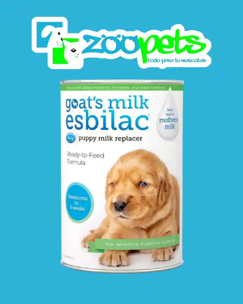 Goats Milk Esbilac® está elaborado con proteína de leche entera de cabra, ideal para cachorros con sistemas digestivos sensibles. Después de la leche materna, Esbilac® proporciona todos los elementos nutricionales necesarios para cachorros que necesitan alimentación suplementaria o perros adultos que requieren una fuente de nutrientes altamente digeribles. Formulado científicamente con leche de cabra natural específicamente para cachorros con sistemas digestivos sensibles. Formulado para proporcionar un patrón calórico similar a la leche materna en proteínas, grasas y carbohidratos. Aporta las vitaminas y minerales necesarios para garantizar el correcto desarrollo y crecimiento. Elaborado con una mezcla cuidadosamente seleccionada de fibras para promover una digestión saludable. Fórmula fácil de digerir, muy sabrosa, fácil de mezclar. Suplemento ideal para post cirugía y/o convalecencia. Ingredientes: Aceite Vegetal, Agua, Biotina, Carbonato de calcio, Carragenina, Caseína, Celulosa en polvo, Citrato de Potasio, Clorhidrato de Tiamina, Clorhidrato de piridoxina, , Cloruro de colina, cloruro de potasio, Dioxido de Silicio, Fibra de avena, Fosfato dicálcico, Fosfato dipotásico, Fosfato tricálcico, Fructooligosacárido, L-arginina, Leche entera de cabra en polvo, Lecitina, Maltodextrina, Niacina, Pantotenato cálcico, Proteina de Leche en Polvo, Riboflavina, Sal, Selenito de sodio, Sulfato de cobre, Sulfato de magnesio, Sulfato de manganeso, Sulfato de zinc, Sulfato ferroso, Taurina, Vitamina A, Vitamina B12, Vitamina D3, Vitamina E, Yoduro de Potasio, DL-metionina. Proteína Cruda, min 4.5% Análisis Garantizado: Grasa Cruda, min 6.0% Fibra Cruda, max 0.8% Humedad, max 85.0% Energía Metabolizable (E.M.): 762 kcal/kg o 11.3 kcal/cucharada. Goats Milk Esbilac® Liquid Sustituto de leche de cabra líquido para cachorros - listo para consumir. Presentaciones: 325 ml. Este producto está diseñado solo para alimentación intermitente o suplementaria. No apto para consumo humano.
