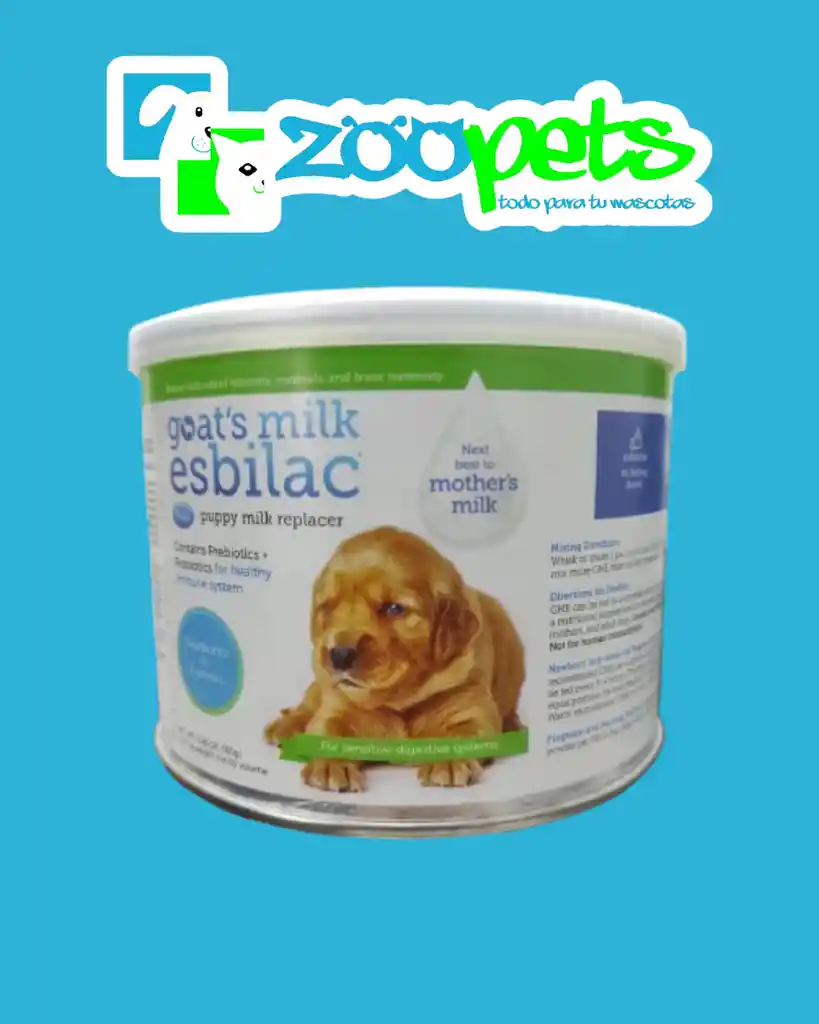 Goat's Milk Esbilac® está elaborado con proteína de leche entera de cabra para cachorros con sistemas digestivos sensibles. Después de la leche materna, Goats Milk Esbilac® proporciona todos los elementos nutricionales necesarios para cachorros que necesitan alimentación suplementaria o perros adultos que requieren una fuente de nutrientes altamente digeribles. También recomendado para cachorros en crecimiento o perros adultos que están estresados y requieren una fuente adicional de nutrientes y energía.