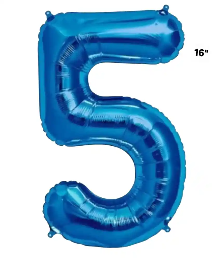 Globo Metalizado Numero 5, Color Azul, 16 Pulgadas, Para Fiestas, Cumpleaños