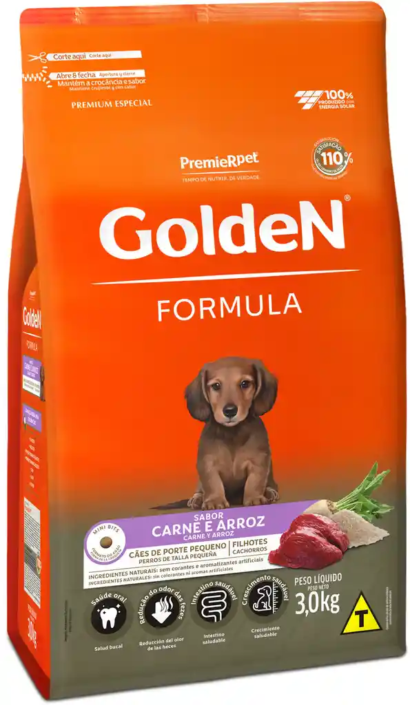 Este producto es indicado para perros cachorros de talla pequeña desde el destete hasta la edad adulta Recomendaciones Por tratarse de un alimento completo, balanceado y rico en nutrientes, puede ser utilizado por hembras en el último tercio de gestación o en lactancia. No recomendamos ningún tipo de suplementación vitamínico-mineral. Ingredientes Harina de vísceras de pollo, harina de carne y huesos de bovino, gluten de maíz, aislado de proteína de soja, maíz, arroz, afrecho de arroz, pulpa de remolacha, grasa de cerdo, grasa de pollo, aceite de pescado, cloruro de potasio, cloruro de sodio, ácido propiónico, bentonita, antioxidantes (BHA, BHT), extracto de Yucca schidigera (0,04%), hexametafosfato desodio (0,10%), hidrolizado de hígado de aves y cerdo, vitamina A, vitamina B1, vitamina B2, vitamina B3, vitamina B5, vitamina B6, vitamina B7, vitamina B9, vitamina B12, vitamina C, cloruro de colina, vitamina D3, vitamina E, vitamina K3, minerales (yodato de calcio, selenometionina, sulfato de cobre, sulfato de hierro, sulfato de manganeso, sulfato de zinc). Indicaciones de Uso Siga la orientación del médico veterinario o utilice la tabla de recomendación de consumo diario. Para obtener mejores resultados, divida la cantidad diaria en 2 o más porciones.