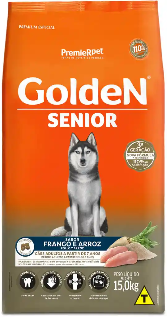 Este producto es indicado para perros adultos en mantenimiento a partir de los 7 años de edad Recomendaciones Por tratarse de un alimento completo, balanceado y rico en nutrientes, no recomendamos ningún tipo de suplementación vitamínico-mineral. Este producto está contraindicado para hembras en gestación o lactancia debido a su alto contenido de fibras y reducido contenido calórico. Ingredientes Harina de vísceras de pollo, maíz, arroz, afrecho de arroz, fibra de caña de azúcar, semillas de lino, pulpa de remolacha, grasa de pollo, cloruro de potasio, cloruro de sodio, sulfato de condroitina, sulfato de glucosamina, ácido propiónico, bentonita, antioxidantes (BHA, BHT), extracto de Yucca schidigera (0,04%), hexametafosfato de sodio (0,10%), hidrolizado de hígado de aves y cerdo, manano-oligosacáridos, vitamina A, vitamina B1, vitamina B2, vitamina B3, vitamina B5, vitamina B6, vitamina B7, vitamina B9, vitamina B12, vitamina C, cloruro de colina, vitamina D3, vitamina E, vitamina K3, minerales (yodato de calcio, selenometionina, sulfato de cobre, sulfato de hierro, sulfato de manganeso, sulfato de zinc). Indicaciones de Uso Siga la orientación del médico veterinario o utilice la tabla de recomendación de consumo diario. Para obtener mejores resultados, divida la cantidad diaria en 2 o más porciones.
