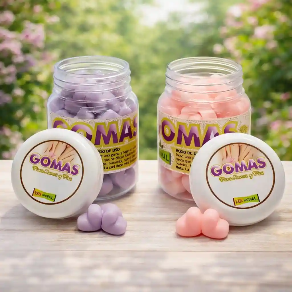 Gomas Hidratantes para la piel tipo artesanal, diseñadas para manos y pies, las cuales se derriten con el calor corporal para convertirse en aceite hidratante. Uso: Se toma una goma, se frota entre las manos hasta que se derrita y se aplica sobre la piel. Suaviza, humecta y nutre dejando la piel suave. Fragancias Chocolate Frutos Maracuya Coco Sandía