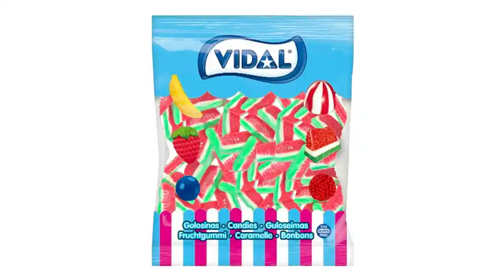 Las Gomas Vidal Trozos de Sandía combinan un vibrante sabor frutal con una textura suave y agradable. Su diseño que imita la apariencia de una rodaja de sandía las hace llamativas y divertidas, ideales para todo tipo de celebraciones o como snack. Presentadas en un paquete de 1 kg, son perfectas para compartir o incluir en mesas de dulces y bolsas de regalo.