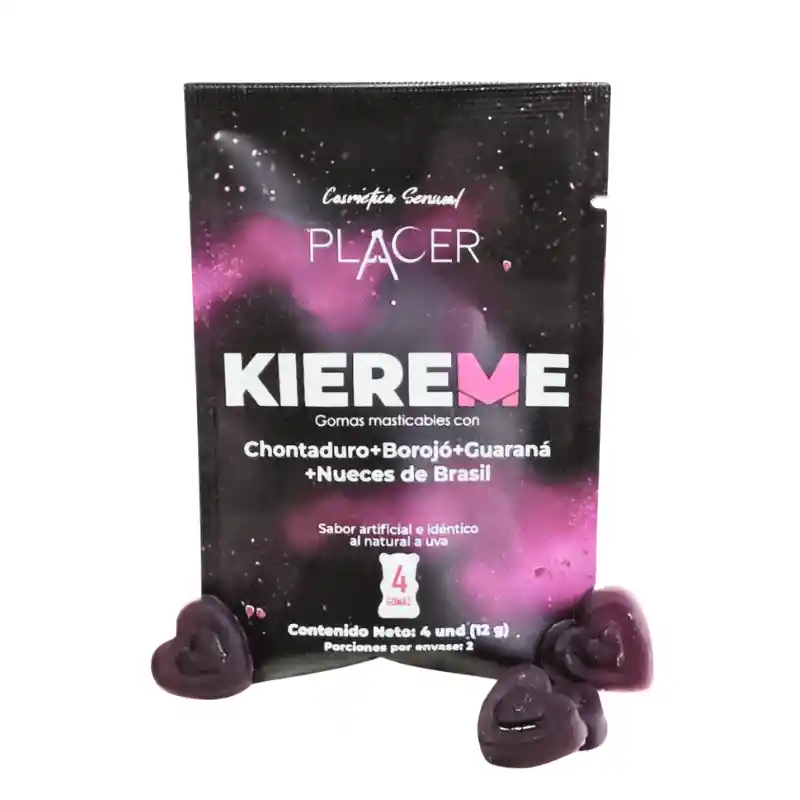 - Es un medicamento - No exceder su consumo - Leer las indicaciones y contraindicaciones en la etiqueta - Si los síntomas persisten, consulte a su médico Gomitas que potencian tus encuentros íntimos PARA USO femenino y másculino A base componentes naturales Como Chontaduro, Maca y Borojó Te ayudarán a mantener el ánimo arriba Mayor estimulación y más deseo AUMENTO DE LUBRICACIÓN Y SENSIBILIDAD EN MUJERES ERECCION FIRME Y DURADERA EN HOMBRE Mas vitalidad física, Mas energía, Disminuye el cansancio Modo de Uso: Comer una o dos gomas 20 minutos antes de la relacion