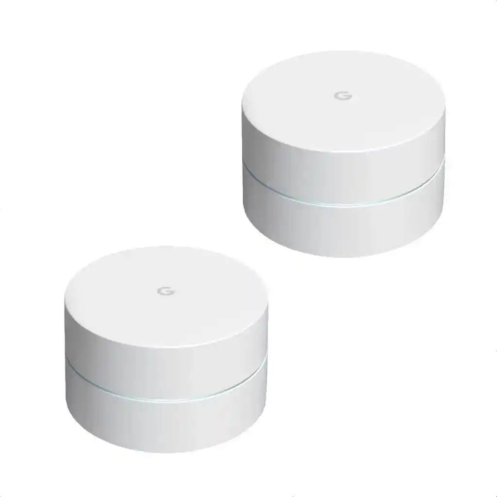 Google Wifi Mesh Dualband Blanco x 2 pack (GA02430-LA) La forma sencilla de mejorar tu conexión Wi-Fi a un mejor precio. Cobertura para toda tu casa Ayuda a cubrir toda tu casa con una red Wi-Fi rápida y fiable, y elimina el almacenamiento en búfer en cada habitación.1 Una configuración sencilla en pocos pasos. Utiliza la aplicación Google Home para crear una red y tener conexión en cuestión de minutos.2 Control al alcance de la mano. Gestiona y controla tu red desde cualquier lugar con tu teléfono.3 Google Wifi Google Wifi es un sistema wifi conectado escalable y flexible que sustituye el router que tienes ahora y te proporciona una señal estable y fiable. 1 Tenlo todo conectado. Una red wifi en la que puedes confiar. Haz videollamadas de trabajo mientras los niños siguen sus clases online.1 Reproduce en streaming a gran velocidad. Un punto de acceso Google Wifi6 es suficiente para reproducir en streaming varios vídeos en 4K al mismo tiempo.7 Wi-Fi que siempre es rápido. Funciona de forma inteligente en segundo plano para ayudar a que tu conexión Wi-Fi no pierda velocidad y mantiene el almacenamiento en búfer a raya. Seguridad que va un paso por delante. Se actualiza automáticamente para incorporar nuevas funciones y ayudar a que tu red se mantenga segura. Una configuración sencilla en pocos pasos. Utiliza la aplicación Google Home para crear tu red en minutos, tanto si sabes de tecnología como si no. ESPECIFICACIONES Características de LAN inalámbrico Banda Wi-Fi: Doble banda (2,4 GHz / 5 GHz) Estándar Wi-Fi: Wi-Fi 5 (802.11ac) Wi-Fi estándares: 802.11a,802.11b,802.11g,Wi-Fi 4 (802.11n),Wi-Fi 5 (802.11ac) Estándares de red: IEEE 802.11a,IEEE 802.11ac,IEEE 802.11b,IEEE 802.11g,IEEE 802.11n,IEEE 802.11s Algoritmos de seguridad soportados: WPA3 Características Número de núcleos de procesador: 4 Bluetooth: Sí BeamForming (conformación de haces):Sí Puertos e Interfaces Ethernet LAN (RJ-45) cantidad de puertos: 2 Peso y dimensiones Ancho: 106,1 mm Profundidad: 106,1 mm Altura: 68,8 mm Peso: 340 g Contenido del embalaje Router Adaptador AC: incluido Cable Ethernet