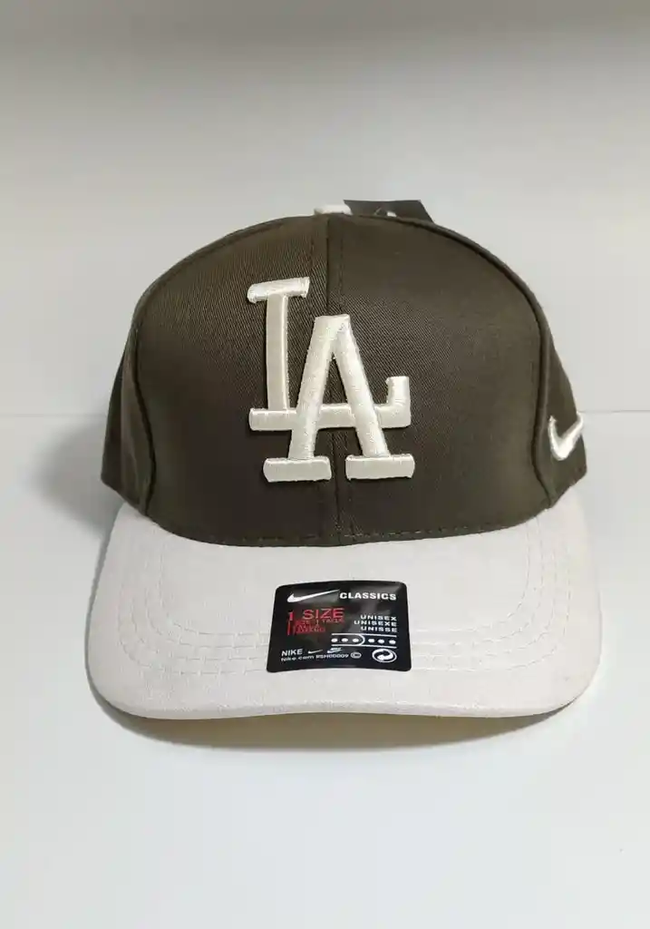 Un estilo moderno y versátil. Gorra en tono café con visera beige, bordado frontal "LA" y logo Nike al costado. Ideal para combinar con cualquier outfit urbano o casual. Talla única unisex, ajustable.