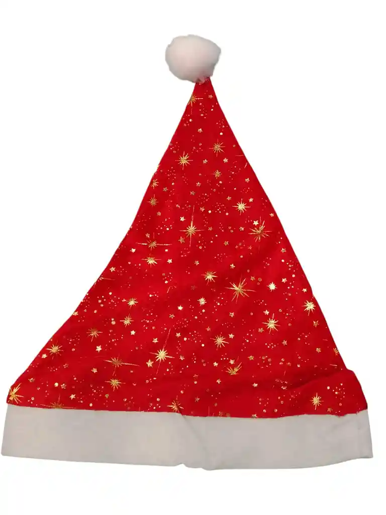 Gorro de navidad en tela roja con destellos dorados