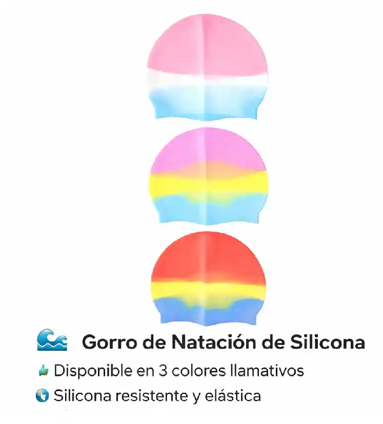 Gorro de Natación de Silicona Disfruta de tus actividades en el agua con comodidad y estilo. Este gorro de natación está diseñado en silicona de alta calidad, ideal para proteger tu cabello mientras nadas. 🚀 Características principales 🌈 Diseños llamativos: disponible en 3 colores modernos 💪 Silicona resistente: material duradero y de alta elasticidad 🧢 Ajuste cómodo: se adapta fácilmente a diferentes tamaños de cabeza 💧 Protección del cabello: ayuda a reducir el contacto con el agua 🏊 Uso versátil: ideal para piscina, natación recreativa o entrenamiento