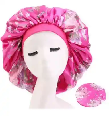 Gorro en satin estampado azul o rosado
