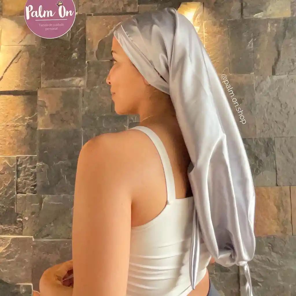 Gorro protector largo para el cabello úsalo para cuando vayas en moto o para dormir 🩷 Tono: En tela de seda satinada con pretina ancha y suave en la parte del amarre, se ajusta con dos cuerdas que dan soporte. Mano de obra colombiana. Diseños exclusivos Palm On.