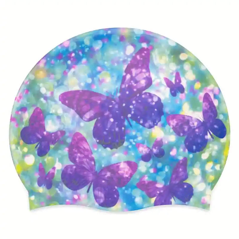 Gorro de natación moderno de doble cara con estampado de alta elasticidad, gorro de natación impermeable de silicona, gorro de natación para cabello largo, adecuado para entrenamiento de natación y deportes de playa al aire libre. Detalles del producto. Composición del material: Principalmente materiales no textiles Material principal: Silicona Grupo de edad aplicable: 14 años+ Color: Mezcla de color Cantidad: 1