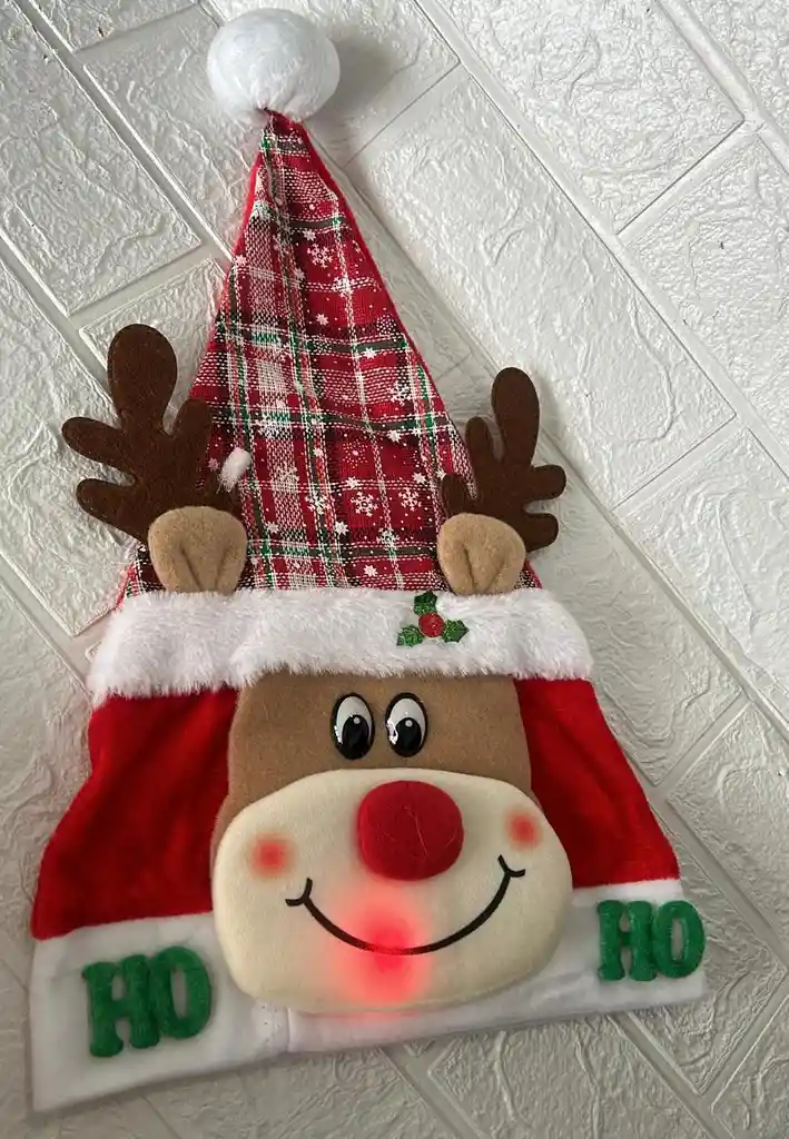 GORRO NAVIDAD ROJO RENO CON LUCES (( TALLA UNICA )) COD.2664