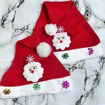 Dale un toque especial y lleno de alegría a la Navidad con el Gorro Navideño Santa Magic, elaborado en tela suave tipo fieltro, ideal para niños y adultos. Su diseño clásico en color rojo con borde blanco destaca por su adorable aplique en relieve del rostro de Santa Claus y copos de nieve decorativos en colores brillantes, que aportan un estilo festivo y encantador. Cuenta con pompón blanco esponjoso y costuras resistentes, brindando comodidad y durabilidad. Perfecto para celebraciones navideñas, sesiones de fotos, eventos escolares, reuniones familiares o como accesorio para regalos y decoración.